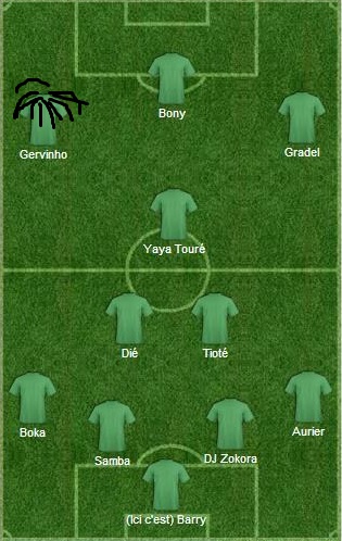 Le seul réel changement est la présence de Gradel à la place de Kalou. Drogba est ENCORE sur le banc.