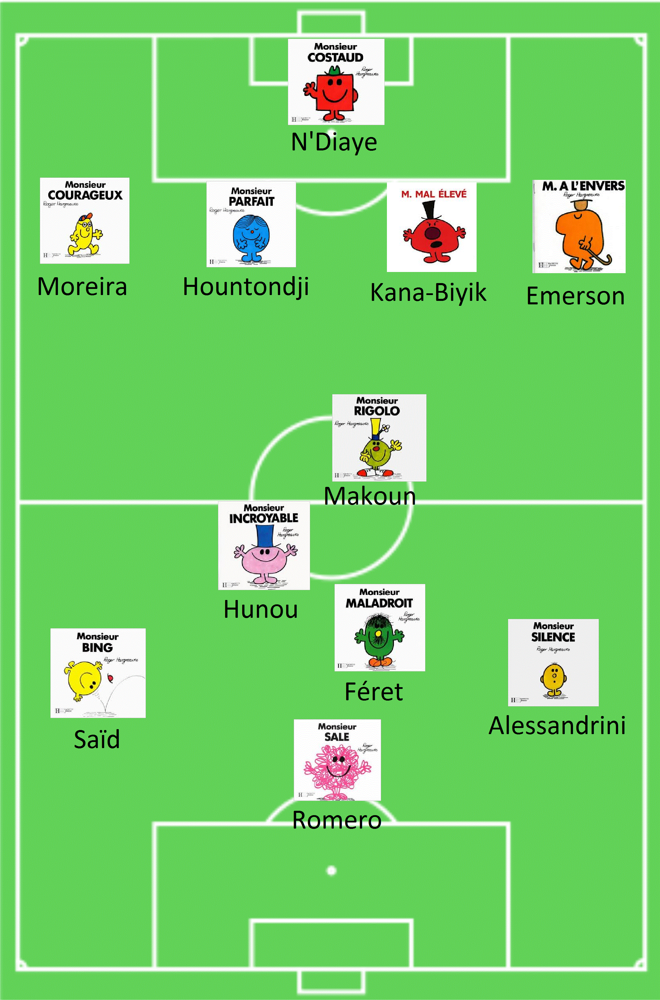 Emerson, 1 saucisse : le sosie de Bruno Cheyrou n’a rien apporté offensivement et a laissé des boulevards sur son côté. Après Souprayen, Mavinga, M’Bengue, Emerson, on aimerait bien, un jour, voir un bon latéral gauche. Même juste pour un match, histoire de voir comment c’est. Dis donc, Steven Moreira, ça te dirait de (re)jouer à gauche ?