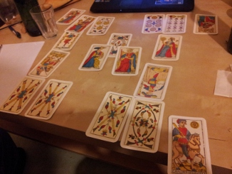 Et voilà, je savais que j’aurais dû truquer le tirage en enlevant la Maison-Dieu du paquet, voilà. De grands pouvoirs impliquent de grandes responsabilités. Mon professionnalisme coûtera le match et la réputation de l’équipe de France, puisqu’elle a tiré la trop nommée Maison-Dieu, à l’envers en plus, dont la terreur foudroyante n’est plus à expliquer; tous les ingrédients pour un bon gros shitstorm étaient déjà réunis dans la description de la sélection, et maintenant on a trouvé le détonateur : les joueurs vont déclencher une algarade, la rébellion s’activer, Deschamps être invité à entretenir des relations anales, la page du bus de la honte pourtant démoli par Adidas n’arrive toujours pas à se tourner (en même temps, avec tout l’éjaculat que Praud et ses commensaux ont déversé dessus, elle doit trop coller aux pages suivantes), tous les éditorialistes ont une demi-molle et les plumes médiocres de leurs séides vont être à 130% de leurs capacités dès huit heures du matin pour copier-coller leurs articles de naguère et de misère. Pendant ce temps, les Suisses s’en foutent et ne font que passer, profitant de cette occasion trop belle pour planter quelques pions et se qualifier pour le second tour, à la faveur du 8 d’Épée à l’envers, déjà tiré ci et là, qui révèle une libération bienvenue après de gros efforts, et la perspective de nouveaux horizons. En somme, elle est déjà qualifiée, et la France est dans l’antichambre de l’Enfer. Le tout dans un match où le public sera aux anges, sans doute heureux de voir s’arrêter la série des matches nuls vraiment nuls entre la France et la Suisse, et se chauffera la voix, en témoigne le jeune homme émotif qu’est le Valet de Coupe.