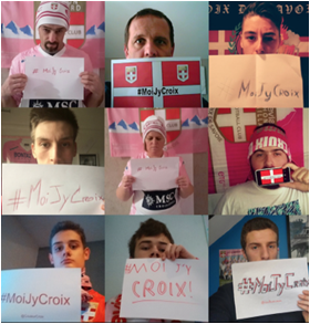 #MoiJyCroix créé par nos enfants de Couleur Croix pour soutenir nos joueurs étaient une opération pleine d’amour. Nous décidâmes avec mon acolyte Franck Ripoux de répondre à leur appel avec des photos au message clair pour notre club. On y croit, mais sortez vos manches à burnes.