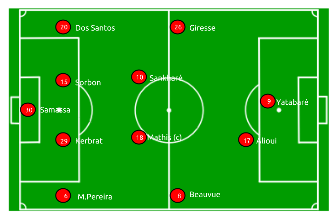 Samassa (3/5): Il fait un bon match dans l’ensemble, il est peu sollicité mais sort une belle frappe de Ruben. Cependant sur le but il reste englué sur sa ligne. Faut tout arracher quand on fait 2 mètres et qu’il y a un ballon dans ses six mètres.
