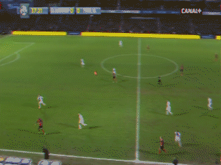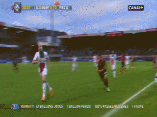 16ème : OUUUUUUUUUUUUuuuuuuuhh. M.Pereira envoie un scud à Atik qui ne peut contrôler. Du coup ça fait un ballon en cloche qui retombe devant Alioui qui frappe instantanément devant la surface. Ça passe pas très loin du poteau de Sirigu.