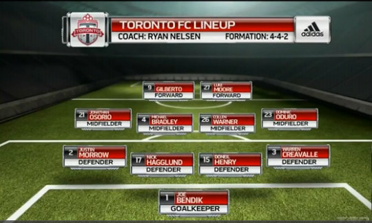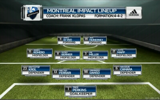 Regarde Joey, ce match est encore un exemple criant des utopies de Klopas. Dans son monde merveilleux, il suffit d’aligner Eric Miller, qui n’a plus jouer depuis trois mois, milieu de terrain, alors que rappelons-le, il s’agit d’un arrière droit qu’on a fait jouer surtout à gauche, pour que Patrice Bernier soit enfin libéré de ses tâches défensives et qu’on ne prenne plus de but. Et puis tiens, pour que ça marche encore mieux, changeons une nouvelle fois la paire défensive avec une inédite charnière Danso-Ferrari…