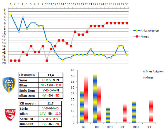 Arles, malgré une série de 4 matches sans défaite depuis l’arrivée de Dumas, flirte avec la zone rouge, tandis que les nîmois ont été stoppé dans leur élan, à domicile. Mais leur rêve de montée n’est pas envolé et ce déplacement chez un mal classé est une bonne occasion d’affirmer cette ambition, avant les réceptions d’Angers, Dijon, ou encore Monaco.