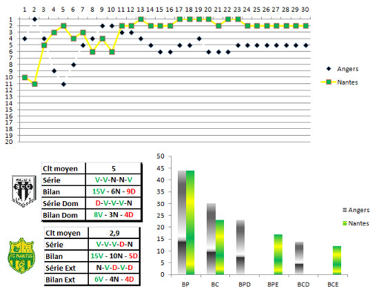 Angers enchaîne les résultats positifs et ne pointe qu’à 3 points du podium. Invaincus à domicile depuis début janvier, ce match pourrait rapporter gros, en ne revenant qu’à un point de Nantes. Des canaris qui n’ont pris qu’un point lors de leurs deux derniers matches et qui doivent donc se réveiller pour le sprint final, la montée étant encore loin d’être acquise au vu du rythme des poursuivants.