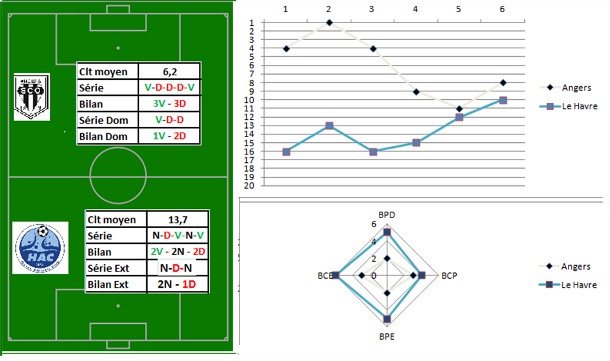 Le Havre enchaîne les bons résultats, dont le dernier en date est une victoire à Monaco, après un début de saison poussif. Du côté d’Angers, c’est tout ou rien, capables de perdre à domicile contre Guingamp ou s’imposer à Lens. Ils n’ont pris qu’un tiers de leur point à domicile. Face à un adversaire qui n’a jamais gagné à l’extérieur, ils ont la chance de montrer leur potentiel et s’affirmer dans la course à la montée et d’écarter un prétendant.