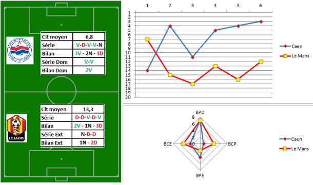Après n’avoir pris qu’un seul point lors des trois premiers matches, les Manceaux ont passé la première et obtenu 2 victoire dans leur prestigieuse MMArena. Hors de leurs terres, un unique point, et doubler celui-ci serait une bonne performance face à des Caennais pour le moment intraitables à domicile, aussi bien en championnat qu’en coupe, et qui viennent de se hisser sur le podium.