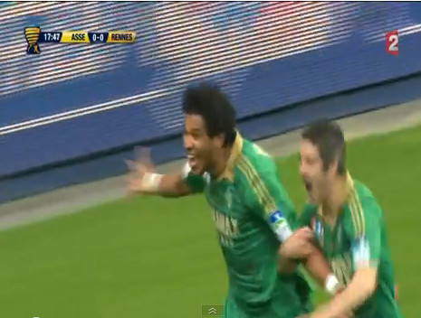 Les Rouges-et-Noirs sont conquérants, essaient de poser leur jeu, ce qu’ils font plutôt bien malgré la timidité étonnante de Jean II, qui foire une passe sur deux. Et c’est justement lui qui, à la fatidique 18e minute, envoie un ballon tout mou à Danzé, sur un gros pressing de Cohade. Sous la pression, notre capitaine panique un peu et tacle timidement le ballon sur Mollo qui passait par là pour envoyer Aubameyang dans la profondeur. Boye tente de s’interposer, mais le centre est déjà parti, comme un symbole de coupe de la Ligue inaccessible, de l’extérieur du pied, comme un symbole de gestechnique que Boye ne pouvait anticiper, ne le connaissant pas. Costil, un peu trop avancé, est trop court pour intercepter, alors que Kana-Biyik et Mavinga ne regardent que le ballon, se grattent les couilles, oubliant le machin chevelu do Brazil, qui n’a plus qu’à pousser le ballon. 1-0, merci, au revoir.