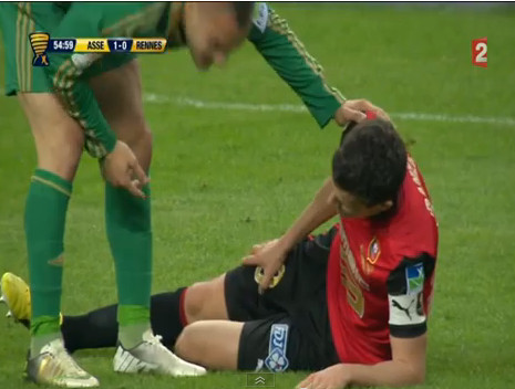 Alors en tribune, on gueule à la reprise du match ; ça ressemble à du désespoir, et d’ailleurs ça en est. Sur le terrain, les Stéphanois se contentent d’attendre, de presser haut les Rennais et d’exploiter les contres. Ce n’est pas flamboyant, mais c’est efficace et suffisant pour annihiler toutes les tentatives rennaises, qui, il faut bien l’avouer, ne sont guère dangereuses. Sur un corner stéphanois, Clerc bourrine Makoun et reprend de volée du biceps un ballon. Costil rate son arrêt du regard, mais Jonathan Pitroipa-héhé-Jonathan-Pitroipa-hoho dégage sereinement le ballon. Cinq minutes plus tard, la blessure à la cuisse de Danzé le contraint de quitter l’arène, sans avoir eu le temps de montrer ses qualités. Dur.