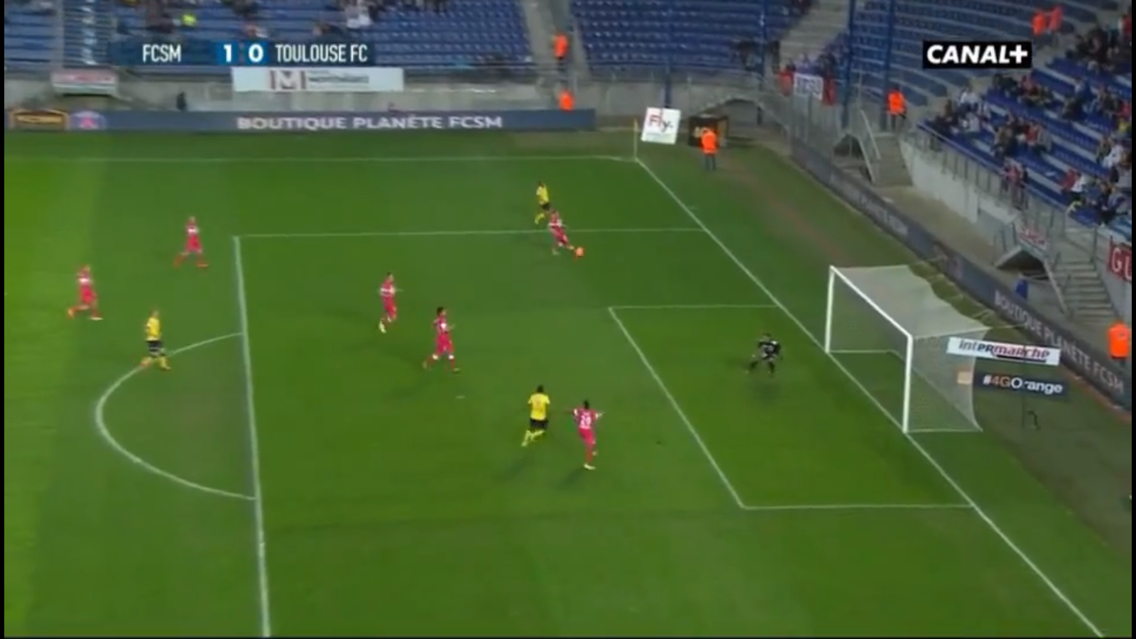 83’ Corner pour Sochaux, Sunzu reprend de la tête ça va sous la barre mais Apprenti-Boucher sort la parade « photo » qui évite le 3-0.