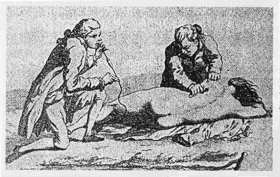 La transition est toute faite pour en revenir aux techniques de réanimation puisque les premières méthodes consistait à « harceler » le malade en lui criant dans les oreilles ou en y allant carrément à coup de trompette. Mon esprit divaguait avec bonheur au fil des paragraphes qui égrenaient les différentes techniques qui évoluaient selon les siècles, avec plus ou moins cruauté : flagellation à mains nues, avec des orties, des linges humides voire plonger un marteau de tapissier dans de l’eau bouillante avant de l’appliquer à côté du coeur ou au creux de l’estomac, au choix.