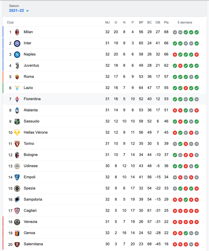 Sans transition, voici les résumés de cette belle journée de Calcio.