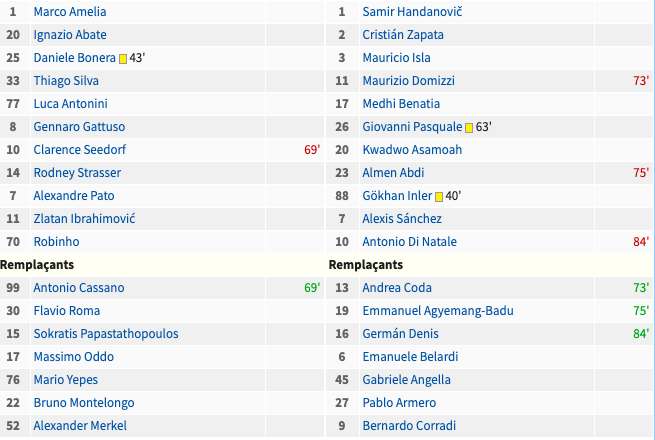 Côté Milan on est sur une équipe A’ puisque Strasser et Bonera remplaçants habituellement prennent la place de Nesta, Pirlo.
