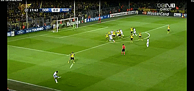 Dans les minutes suivantes, le schéma se répète : Marseille s’avance, le Borussia nous attend et nous fiste à chaque perte de balle. Il faut une superbe sortie de Mandanda pour éviter le 2-0. Le jeu se stabilise ensuite, avec des séquences de possession relativement longues mais stériles en faveur des Olympiens. Face au placement haut de ces derniers, nos joueurs offensifs ne décrochent pas, ce qui condamne les relanceurs à chercher des solutions difficiles, aboutissant à des pertes de balles converties en contre-attaques rapides par les jaunes. La première mi-temps est ainsi l’occasion de se constituer une « contrattaquothèque » de qualité avec cette action, ou bien celle-ci, celle-là ou encore celle-ci (attention, contient des images de viol par des agents de la DDE).