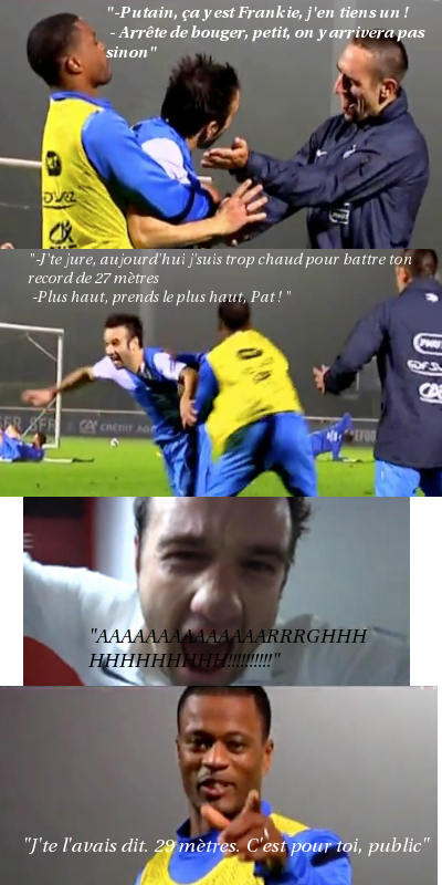 Oui on voit clairement qu’il a envie de simuler une faute et que Pat le retient pour qu’il reste debout.