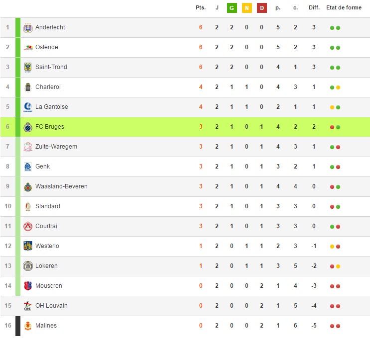 Club Brugge – Malines : 3-0 (à partir de 0’40) Après sa défaite lors de la 1ère Journée à Saint-Trond et au Panathinaïkos,  le Clup a dominé assez facilement le KaVé. Le premier but n’arrive toutefois qu’à la toute fin de première mi-temps sur un but chanceux. Duarte tente un tir de loin, sans danger, mais Paulussen dévie la trajectoire du ballon contre son camp, alors que jusqu’ici la défense malinoise et son goal Jean-François Gillet avait réussi à tenir bon.