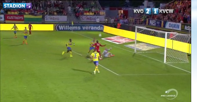 Standard – Zulte-Waregem : 2-1 (à partir de 0’21) Match assez plat entre deux équipes qui ont encore pas mal de progrès à faire. Ca commence pourtant bien pour le Standard, à la 5ème minute Enoh, n’étant pas du tout pressé, décoche une frappe lointaine légèrement détournée qui trompe #Bossut2016. Mais malgré ça les Rouches n’inquiètent pas plus que ça la défense de l’Essevee qui en profite pour égaliser par Thiam, bien servi par Kaya (29ème).