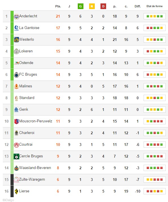 Courtrai – Mouscron : 3-0 Comme ça, on dirait pas, mais Courtrai – Mouscron c’est un peu un derby (18 kms entre Courtrai et Mouscron. Ou Peruwelz), mais bon, ça reste de la branlette géographique. Complètement amorphes lors de la première mi-temps, les Hurlus subissent les assauts courtraisiens et à la 25ème minute Santini est impeccablement servi par Chevalier. Chevalier sera d’ailleurs l’homme du match, après son assist il décoche une frappe sublime dans la lunette qui laisse Cros sur place (34ème). Le KVK gère sa seconde période, laissant venir des Mouscronnois trop mous devant, et le dernier but arrive sur une contre-attaque et un bon appel de Chevalier qui bat Cros d’un plat du pied tranquille. Après un bon début de saison, le RMP rentre dans le rang. A voir si la mauvaise série va continuer.
