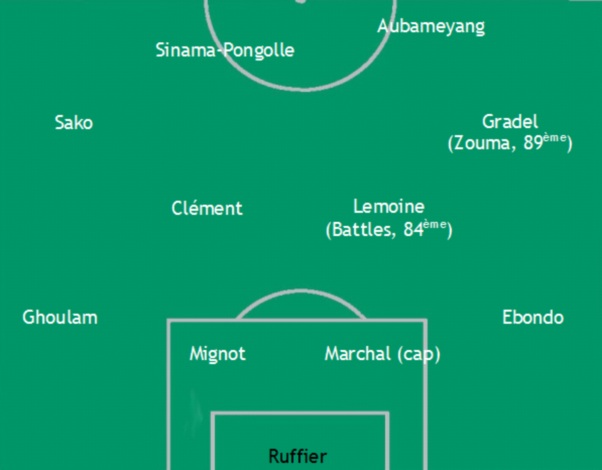 Gradel (l’amour du dribble, 3/5) : Mad Max aime le dribble et ça se voit. A l’aise dans de petits espaces, il a malheureusement tendance à trop vouloir en faire et ne pas faire le bon choix (lever la tête pour passer ou tirer). Il est souvent venu s’empaler sur Ceara ou Jallet, sans jamais vraiment  arriver à faire la différence. Dommage. Remplacé à la 88ème par Zouma (non noté), changement tactique bizarre de Galette qui fait rentrer un défenseur central pour un milieu offensif alors que les Verts courent après le score.