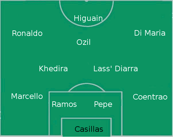 Halleluia aux plus haut des cieux, Kaka est de retour sur le banc. Pour le reste Xabi est suspendu est remplacé par Diarra qui ne lâche plus le terrain depuis qu’il a mis les choses à plat avec son entraîneur. Depuis qu’il enchaîne les bonnes perf’ surtout. Coentrao est à droite même si Al Jazeera préfère le mettre au milieu et Diarra en défense. Enfin Quick est préféré à Flupke en attaque. Ou Higuain à Benzema si vous préférez.