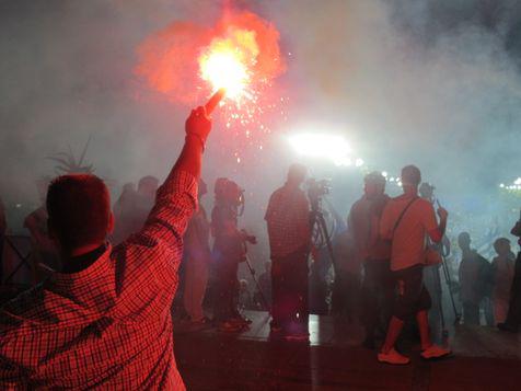 grece-tour-8Et oui ce drapeau  représente bel et bien la lueur des stades grecs sous l’embrasement des fumigènes vu de la cote asiatique