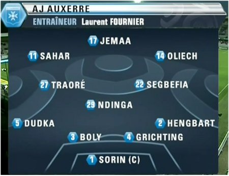 Je vais pas vous le cacher, j’ai un peu pris peur en voyant la feuille de match officielle de la LFP…Composition clairement incompréhensible avec l’entrée de Jemaa et l’absence de Berthod. Ca nous donne une attaque avec deux joueurs en méforme (Sahar, Jemaa), un milieu avec deux joueurs surcotés qu’en foutent plus une (Ndinga, Traoré) et une défense avec un milieu de terrain défensif arrière gauche (Dudka) et un faux vrai latéral (Hengbart).