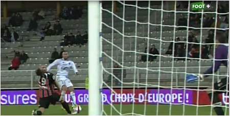 42′ : Penalty pour Nice. Faute de bêtiot d’Ndinga qui confond le ballon avec le pied de Pecinovic. …En plus il se fait mal…Penalty complètement loupé par Manzon…