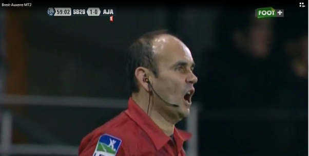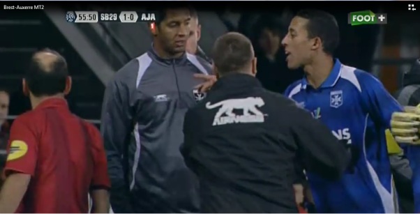 Nous sommes donc à la 54ème minute de jeu. Sur le côté droit de l’attaque auxerroise Kamel Chafni, marocain de son état (çà a une importance pour la suite de l’histoire…) s’avance vers l’arbitre assistant Mr Perruaux, petit et moche de son état (çà n’a aucune importance pour la suite).