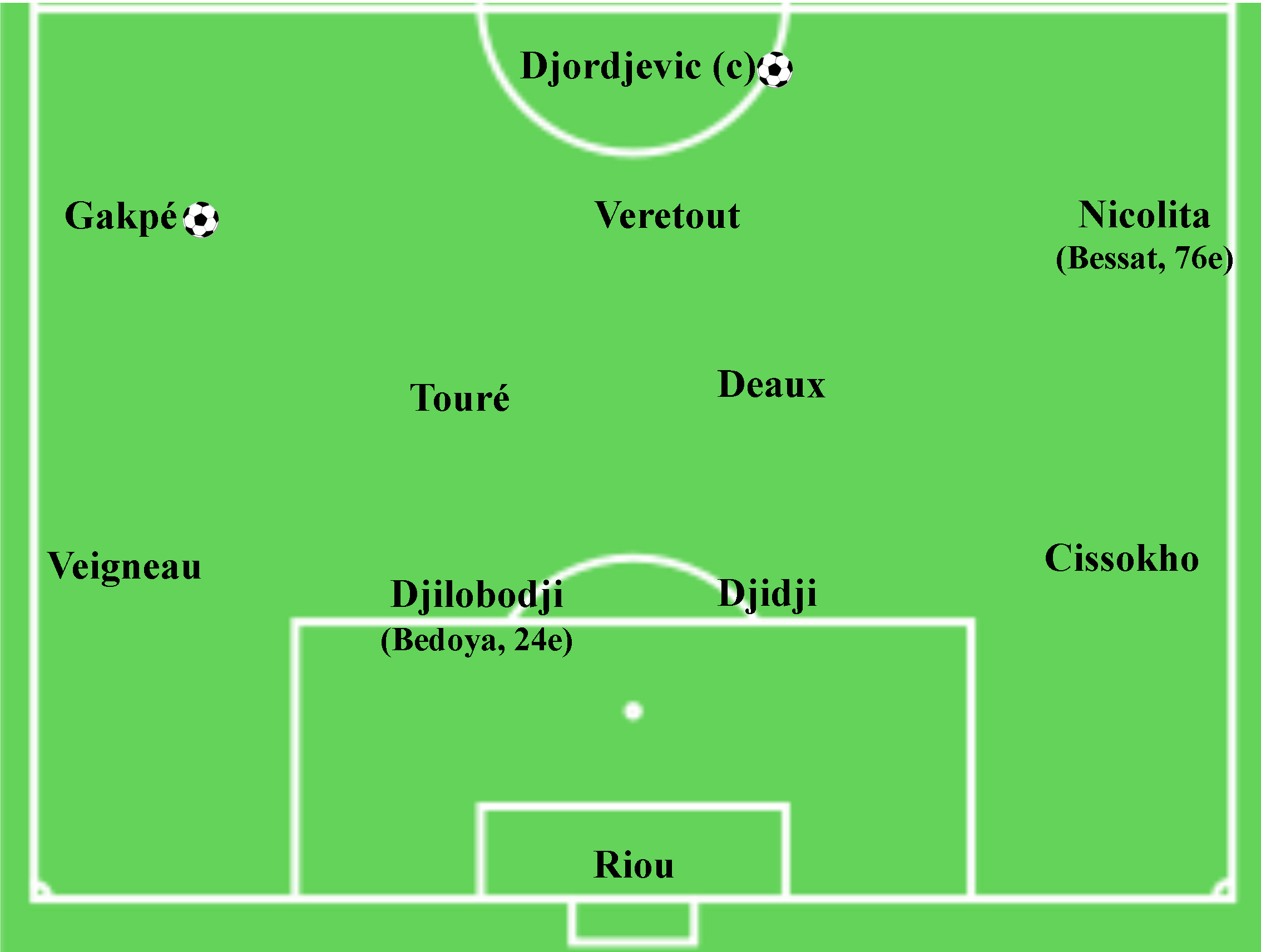 8ème minute : Balle en cloche dans la course de Cissokho, qui élimine Diarra sur son contrôle et centre fort devant le but pour Gakpé. 1-1.