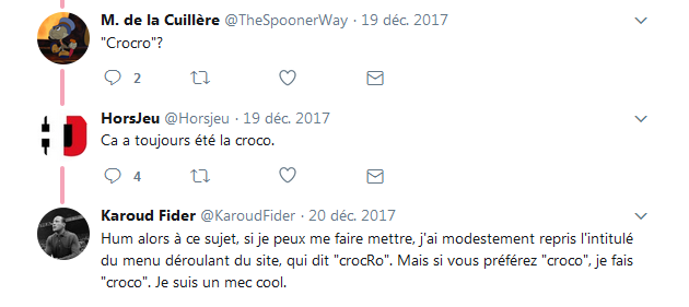 Et je le sais, parce que là, dans le cas qui nous intéresse, c’était moi qui gérait le compte horsjeu. Continue donc en tant que croco ou crocro, sens toi libre !