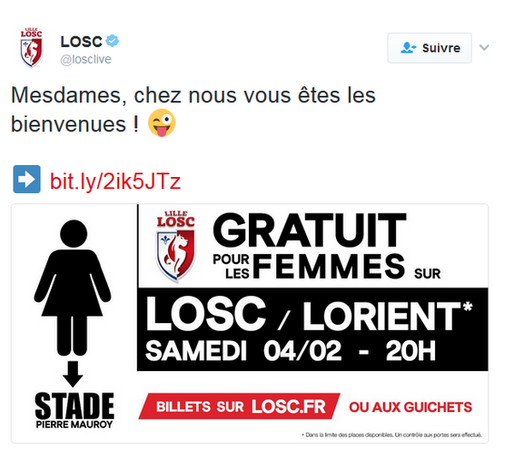 « le LOSC a eu la bonne idée de répondre (à la banderole des supporters Lyonnais, ndcvm) en invitant les femmes au stade Pierre-Mauroy pour la réception de Lorient samedi »